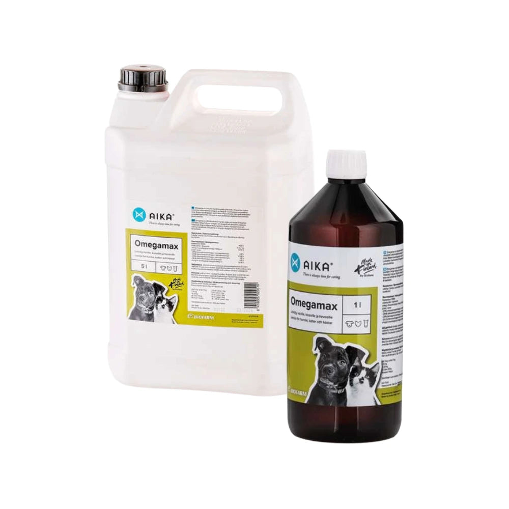 AIKA Omegamax on kotimainen, puhdas lohiöljy, joka tukee lemmikin ihon, turkin ja nivelten terveyttä. Runsas omega-3- ja omega-6-rasvahappopitoisuus edistää kiiltävää turkkia, tervettä ihoa ja nivelten liikkuvuutta. Sopii erityisesti kuivalle iholle, hilseilyyn ja turkin elinvoiman ylläpitoon – loistava lisä päivittäiseen ruokintaan niin koirille, kissoille kuin hevosillekin!