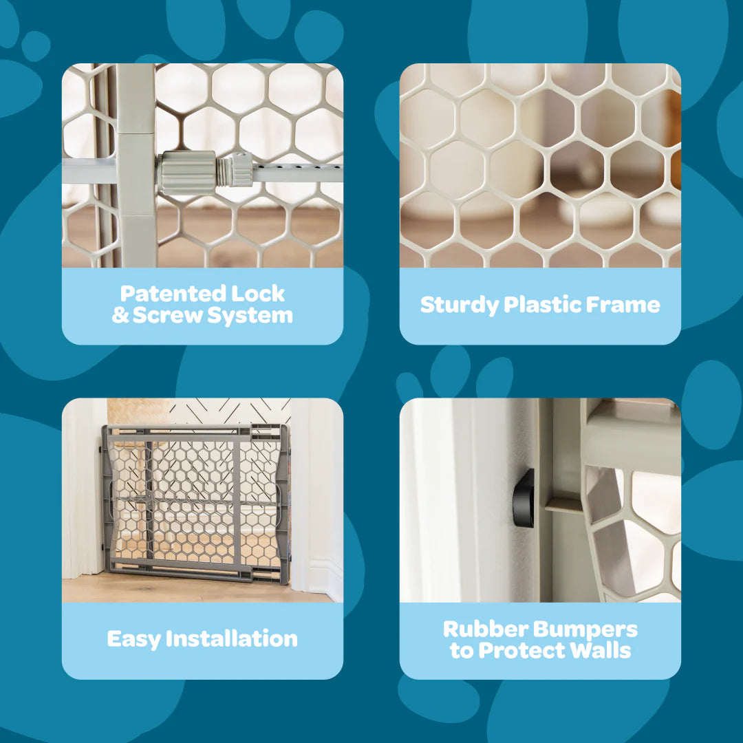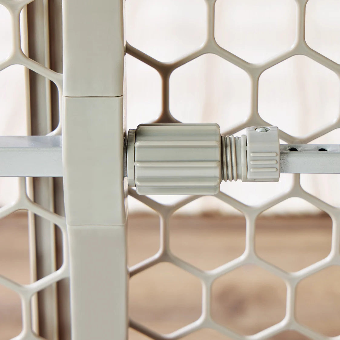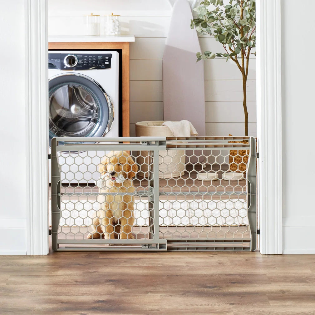 Carlson Säädettävä Lemmikkiaita on käytännöllinen ja kestävä ratkaisu pienten koirien ja pentujen rajaamiseen kotona. Portti on valmistettu korkealaatuisesta harmaasta muovista ja sen korkeus (59cm) tekee siitä helpon astua yli, mutta pitää lemmikit turvallisesti rajatulla alueella. Säädettävä leveys (67 - 106cm) sopii monenlaisiin oviaukkoihin ja käytäviin.
