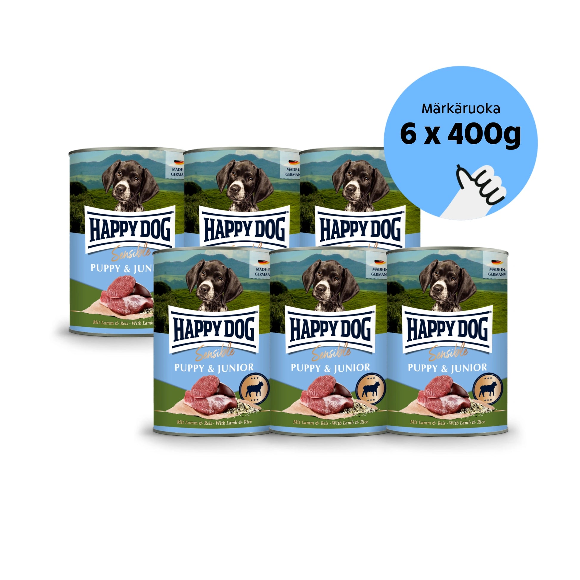 • 6 x 400g Happy Dog Sensible Puppy / Junior märkäruokaa