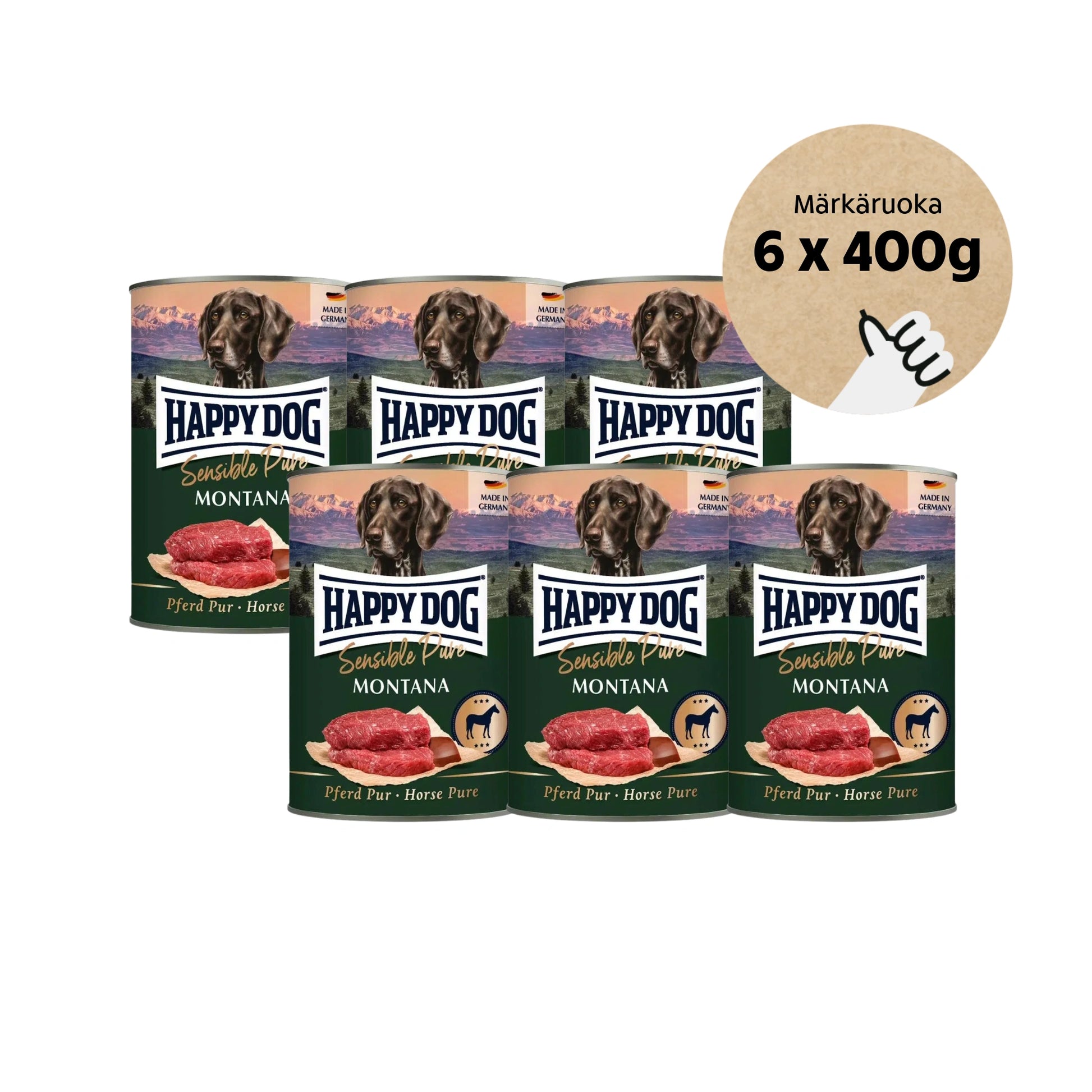 • 6 x 400g Happy Dog Sensible Pur Montana märkäruokaa