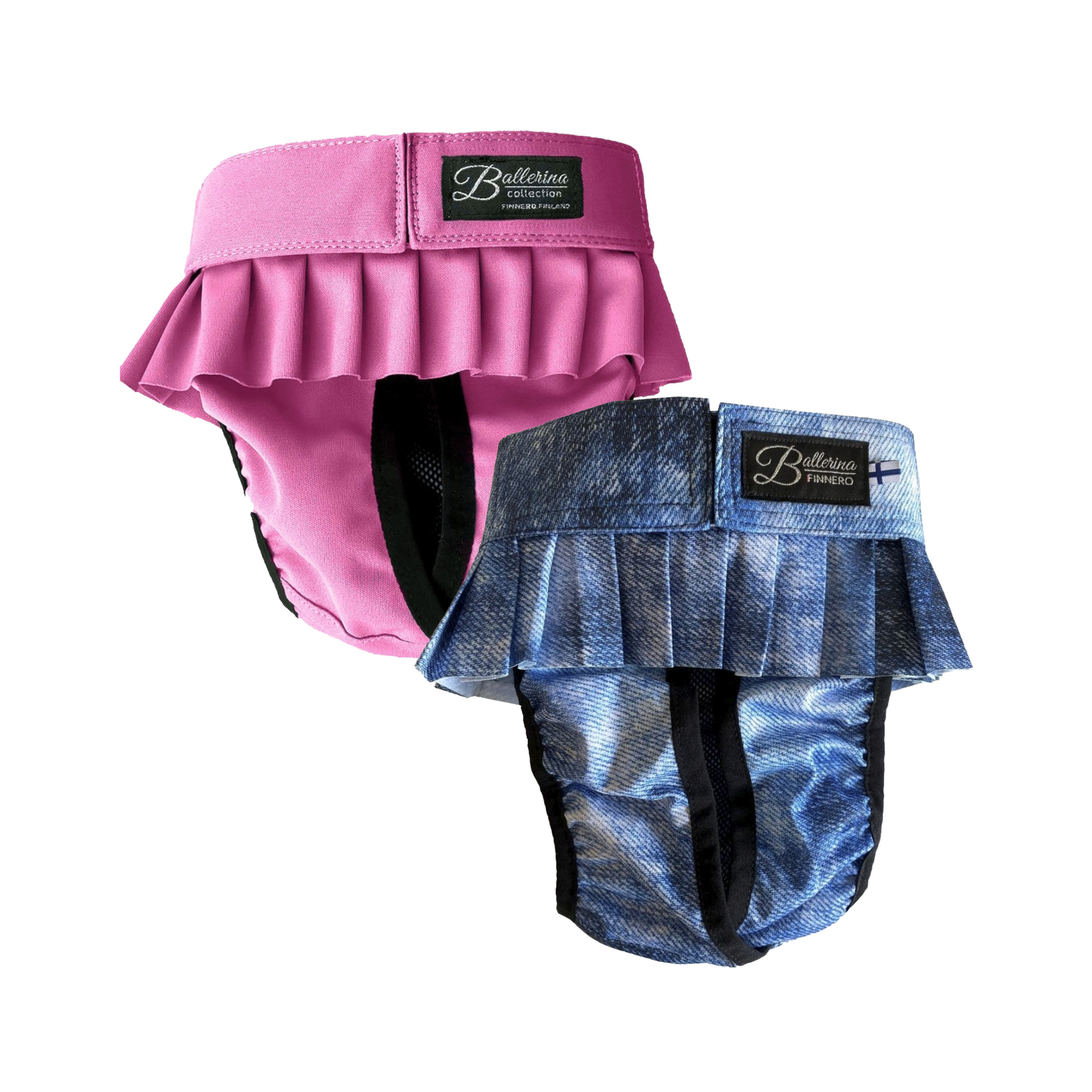 Ballerina-juoksuhousut tuovat yhdistelmään käytännöllisyyttä ja tyttömäistä tyyliä! Leveä, rypytetty helma tekee housuista hamemaiset ja söpöt, ja leveä vyötärökaitale sekä tarrakiinnitys varmistavat, että housut pysyvät tukevasti paikoillaan myös vauhdikkaissa leikeissä. Edessä oleva kuminauharypytys joustaa koiran liikkeiden mukaan, ja kokonaan aukeavana malli on helppo pukea päälle. Häntä sujahtaa helposti omaan aukkoonsa – erityisesti pitkät ja pitkäkarvaiset hännät huomioitu!