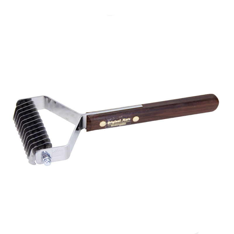 Tämä korkealaatuinen trimmauskarsta on suunniteltu tehokkaaseen turkin hoitoon. Ergonominen puuvarsi tekee käsittelystä miellyttävää, ja ruostumattomat terästerät varmistavat pitkän käyttöiän. Väline poistaa tehokkaasti irtokarvat, pohjavillan ja takut, tehden turkin hoidosta vaivatonta.
