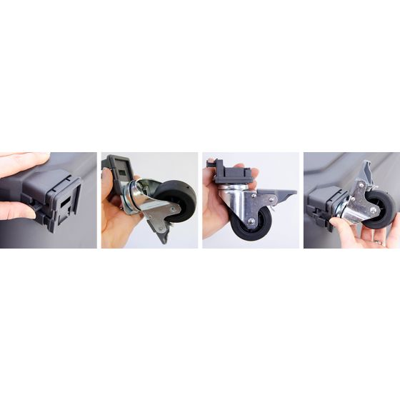MPS Pyörät tekevät lemmikin kuljetusboksista helposti liikuteltavan! Lukittavat pyörät sopivat MPS Skudo IATA 4, 5, 6, 7 ja 8 sekä MPS Skudo Car 80 -kuljetusbokseihin. Pyörien avulla siirrät boksia vaivattomasti esimerkiksi lentokentällä, eläinlääkärissä tai kotona – ja lukituksen ansiosta boksi pysyy turvallisesti paikallaan tarvittaessa.