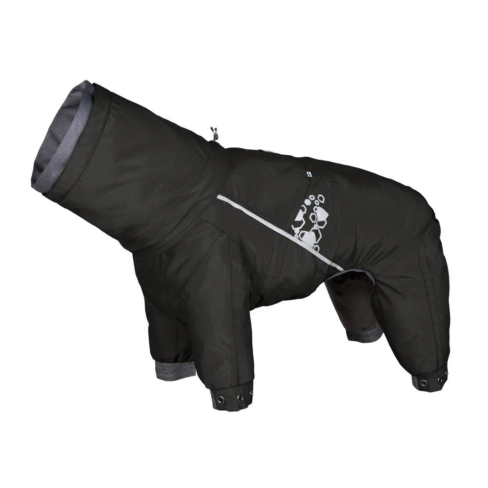 20 % säädettävyys, jopa 6–11 säätöpistettä – tarkka istuvuus joka koiralle: säädettävä selänpituus, rintakehä, vyötärö, pääntie, kaulus ja lahkeensuut.