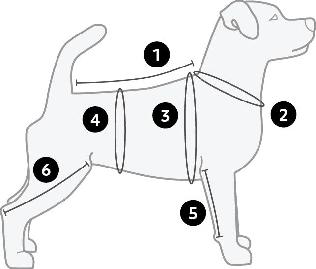 Oman koirasi mittaaminen on helpoin ja varmin tapa löytää kerralla sopiva varuste. Seuraa vain yllä olevia ohjeita ja vertaa mittoja haluamasi tuotteen kokotaulukkoon. Helppo nakki!