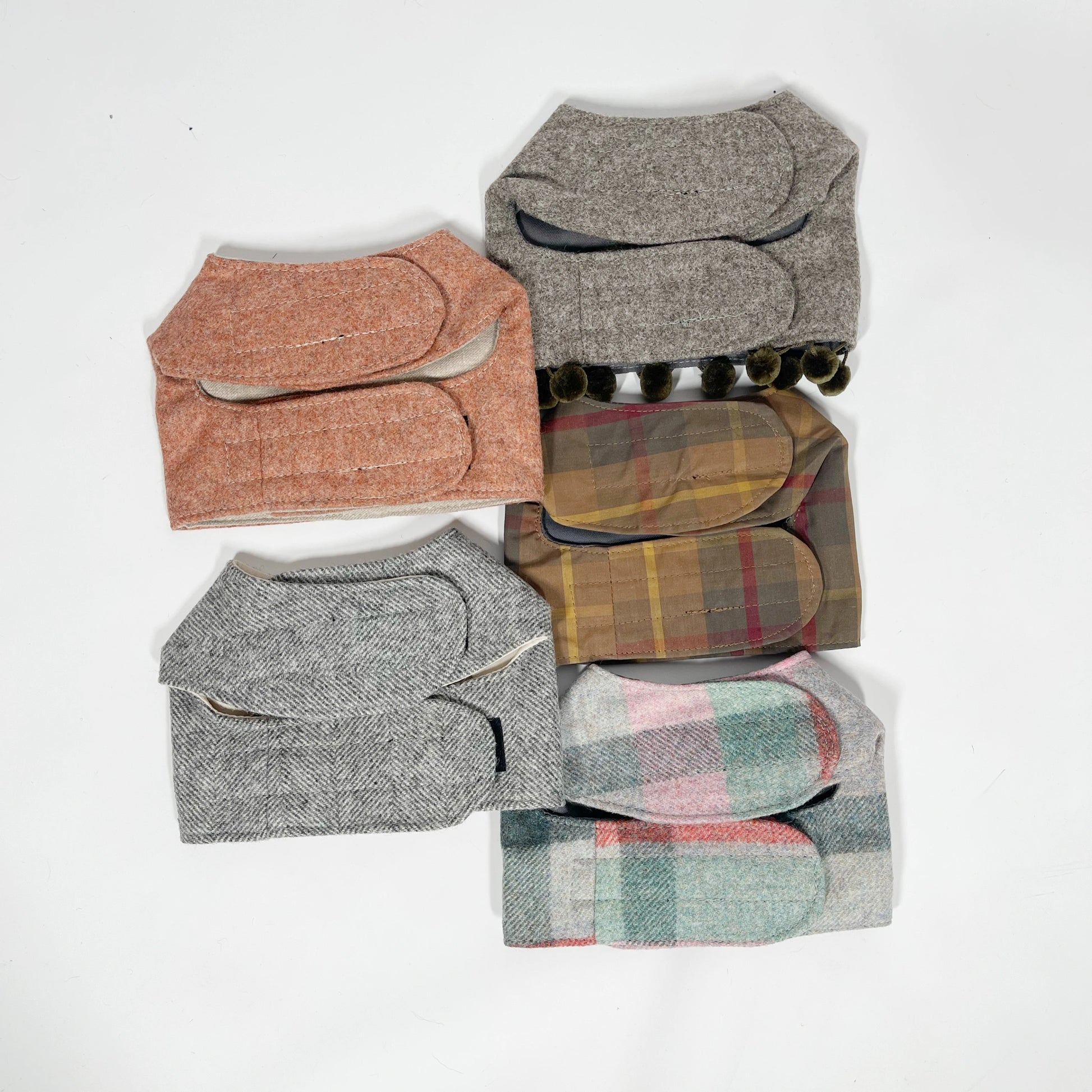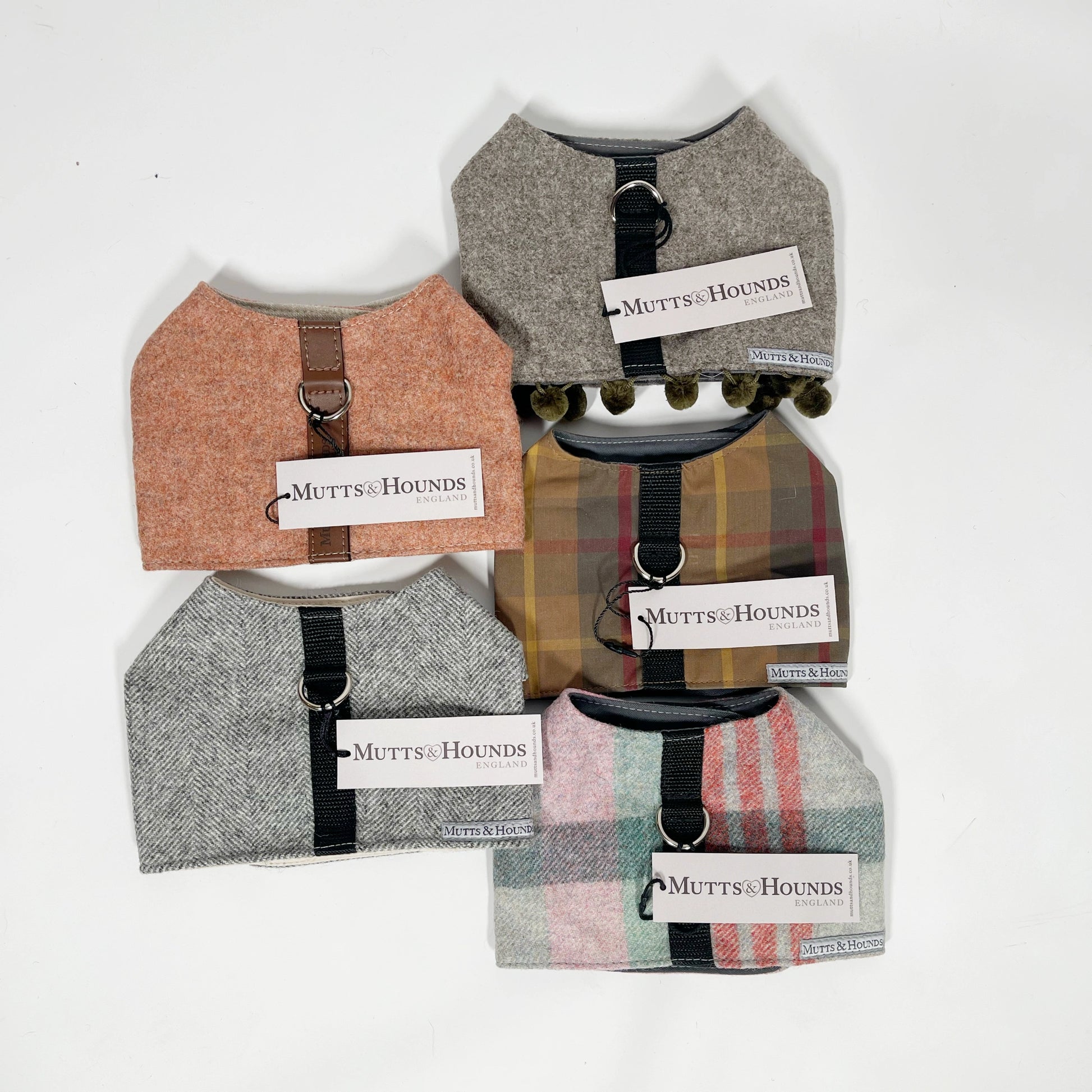 Mutts and Hounds Pehmeät liivivaljaat – ylelliset, pehmeät ja tukevat liivivaljaat koiralle. Käsintehty Yorkshire-tweedistä, säädettävä tarrakiinnitys ja klassisen tyylikäs ilme.