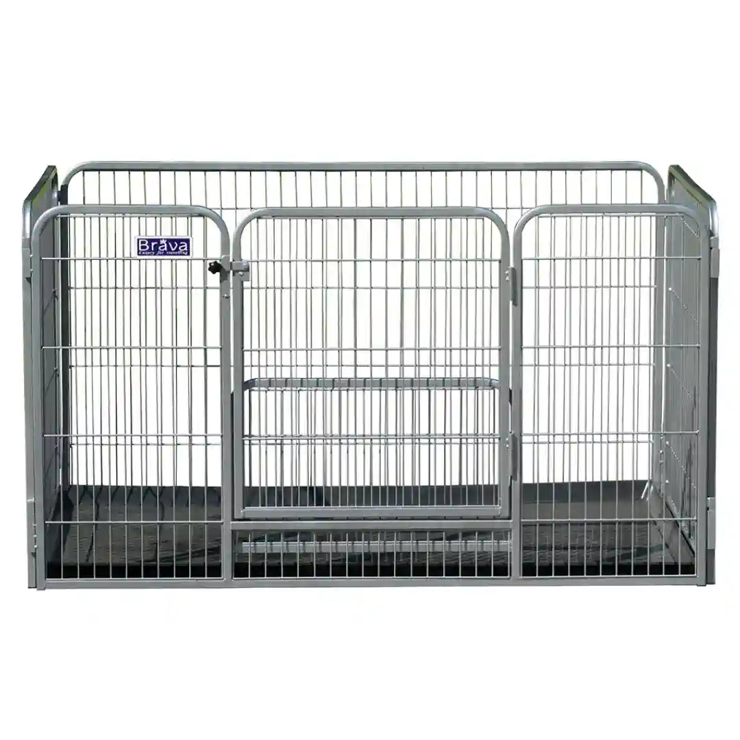 Brava Pentukehä on erittäin tyylikäs ja vankka ratkaisu pennun ensimmäisiin kuukausiin. Jauhepolttomaalattu teräs tekee aitauksesta kestävän ja viimeistellyn näköisen. Pentukehä on helppo koota, ja se koostuu neljästä elementistä sekä irrotettavasta ovesta (leveys 50 cm). Mukana tuleva muovinen pohjakaukalo suojaa lattiaa ja on helppo pitää puhtaana.