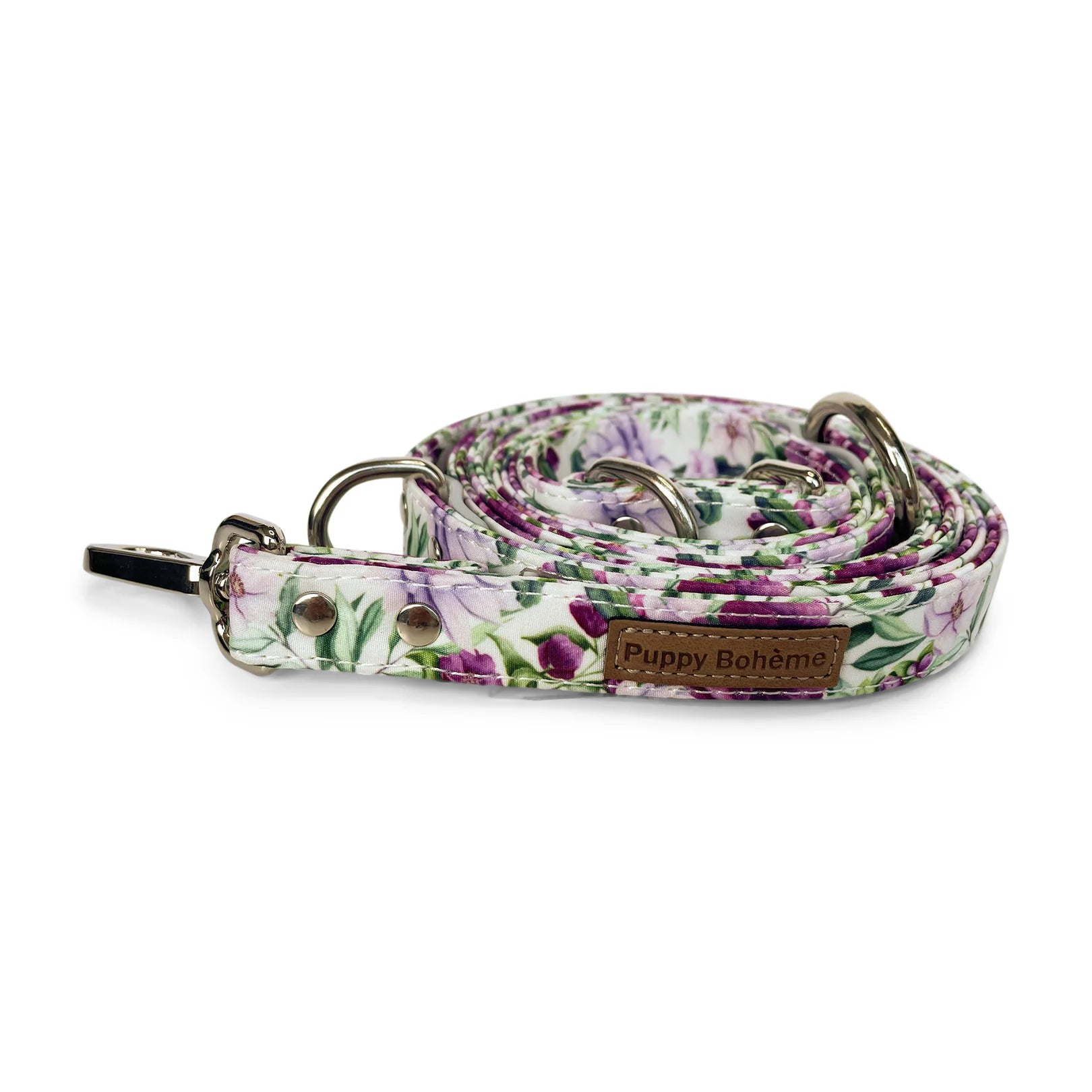 Tämä kaunis kukkakuosinen talutin tuo iloa jokaiseen koiralenkkiin! Säädettävä pituus (jopa 2 metriin saakka) mahdollistaa taluttimen käyttämisen sekä vapaammissa että hallitummissa tilanteissa – täydellinen apu hihnakäytöksen opetteluun. Upeat kultayksityiskohdat viimeistelevät tyylikkään ilmeen.