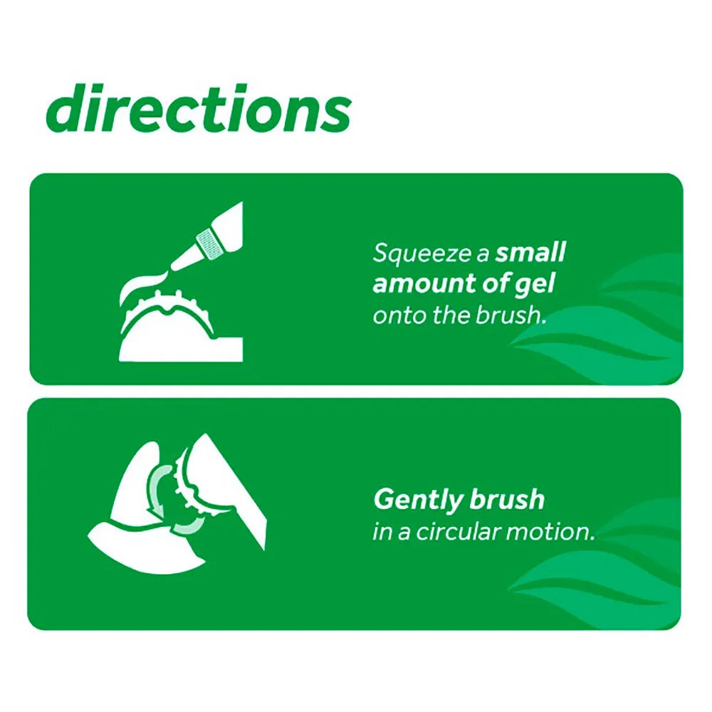 Levitä 4 tippaa geeliä Fresh Breath -hammasharjaan. Harjaa varovasti molemmilta puolilta pyörivin liikkein.